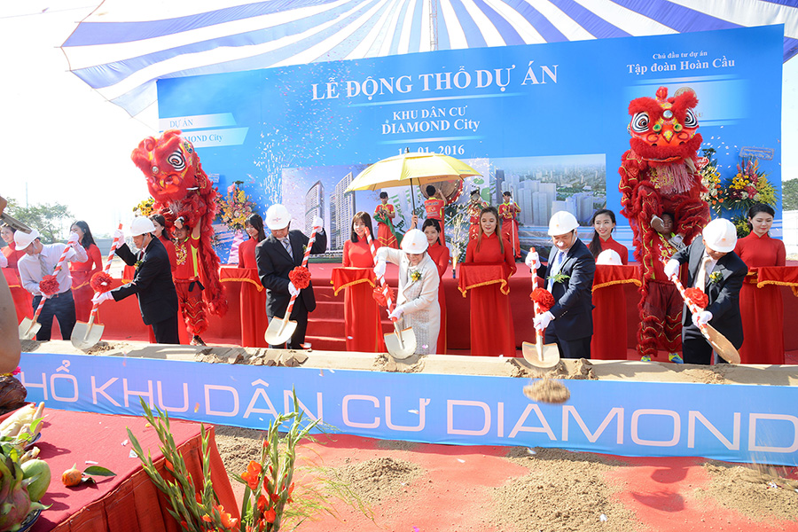 Tp.HCM, lúc 8h30 sáng thứ Sáu – 15/01/2016, Tập đoàn Hoàn Cầu tổ chức lễ động thổ dự án Khu dân cư Diamond City tại công trường dự án ngay mặt tiền đường Nguyễn Văn Linh, Quận 7. Dự án đã thực sự thu hút sự quan tâm của hơn 100 khách mời tham dự, gồm: chính quyền địa phương, cơ quan báo đài, và các đơn vị đối tác của Hoàn Cầu...