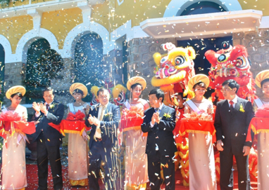 Đại diện lãnh đạo UBND tỉnh Lâm Đồng cùng lãnh đạo Công ty CP Hoàn Cầu cắt băng khánh thành, chính thức đưa Dinh I vào phục vụ du khách tham quan du lịch.